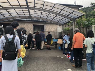 防災食を中心に、ビスケットや缶詰・パックご飯などの詰め合わせを配りました。